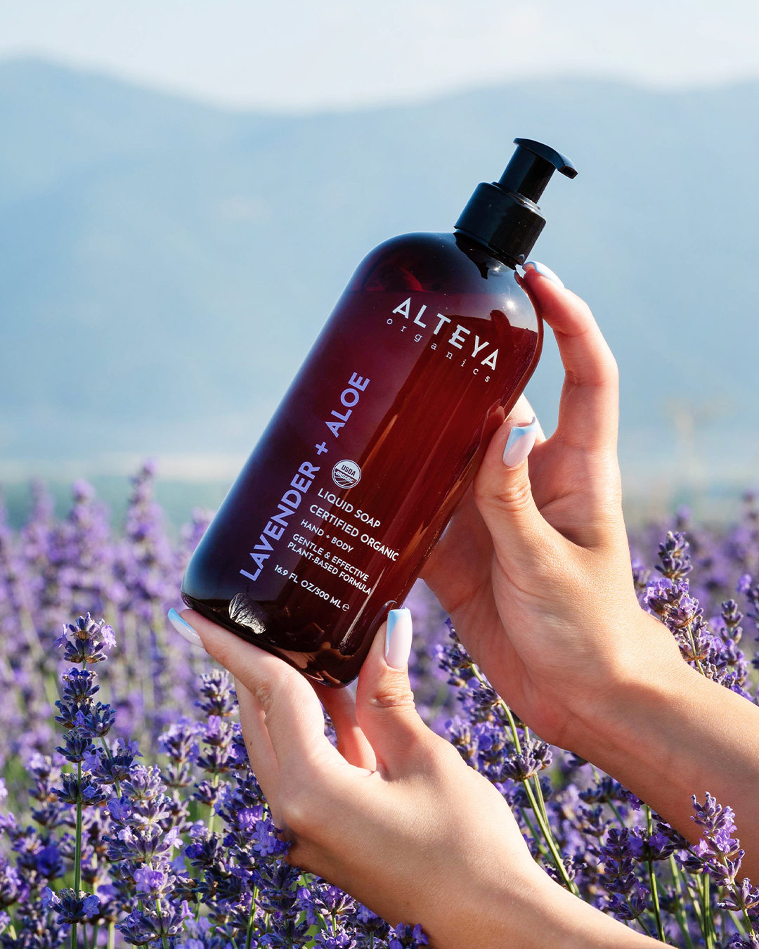 This certified organic liquid soap gently cleanses the skin without disrupting its natural moisture balance, leaving it feeling soothed and refreshed. Enriched with lavender essential oil and aloe, it exudes a delicate, calming floral scent that encourages relaxation.