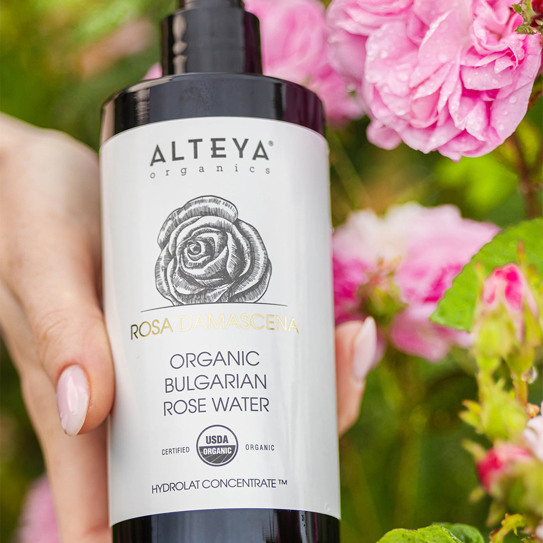 Alteya Rose Water is made from organically grown and ethically harvested Damask roses cultivated on a family farm in Bulgaria’s Rose Valley. It is a 100% pure botanical extract, capturing the synergy and complex fragrance of fresh Rosa Damascena petals. Gently toning, softening, and soothing the skin, it helps restore its natural beauty and youthful appearance. Rose water is a multi-purpose product—perfect not only for facial care but also for body and hair, especially after physical activity, sun exposure, or a shower.