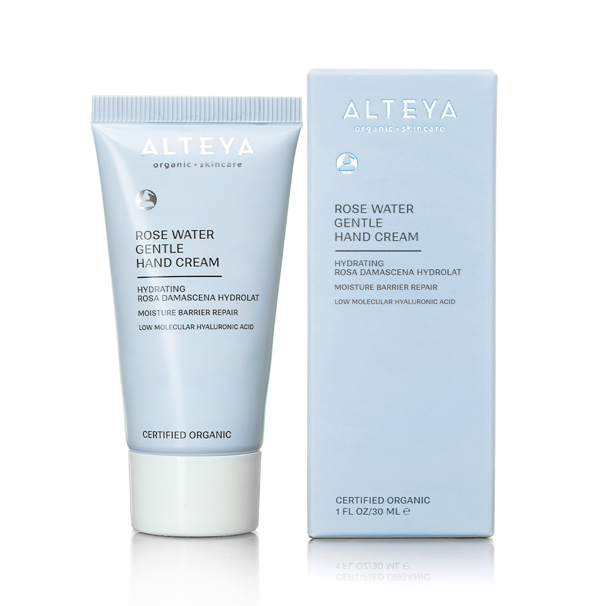 Alteya's Gentle Hand Cream has a lightweight formula that absorbs quickly to provide instant hydration and protect delicate skin all year round. Enriched with soothing rose water and delicate jojoba oil, it promotes soft, hydrated, and replenished skin. Low molecular hyaluronic acid and organic, mild emollients help lock in moisture, strengthening skin's protective barrier for a dewy, radiant complexion.
